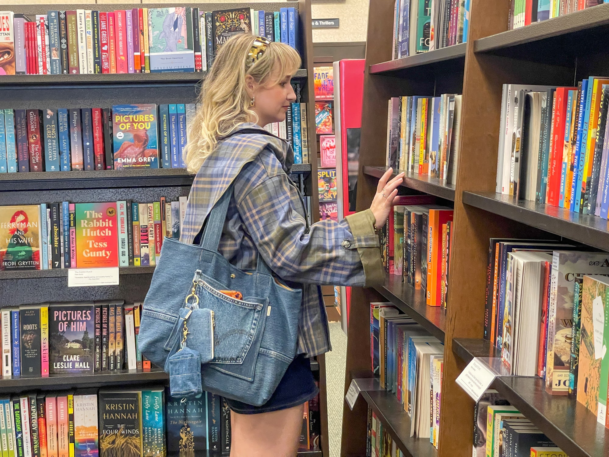 Upcycled Classic Tote Bag - Light Blue Denim {#4}